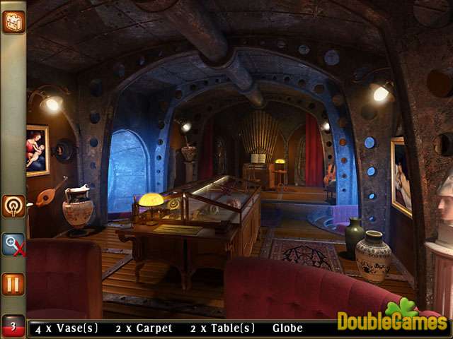 Professor Pierre Aronnax, his Assistant and Ned Land are captured by Captain Nemo, who furrows the seas by his world-famous ship Nautilus. Of course, Nautilus astonishes them by its magnificence, but still the three friends don't lose hope to get out of there and to be on firm ground in the literal sense of the word. This is the beginning of an addicting Hidden Object game. Download 20.000 Leagues under the Sea absolutely for free and help the characters escape from Nautilus, the terror of the sea!
