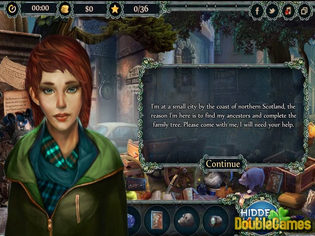Welcome to the new entertaining and addictive online free hidden object game Ancestral Curse. Donna is a 22 years old girl from Michigan. A few days ago she decided to explore her family tree and get to know more about all her ancestors. You're going to join Donna in her adventure and learn about her big family. So, she goes to the little town Rosyth located somewhere in Scotland. Communicate with the local people, gather the needed information, reveal the terrifying truth about the curse. Dive deep into this adventure and perhaps you even will be able to break the curse.