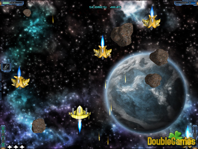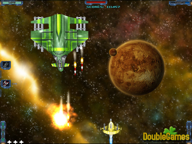 In Back to Earth 2 the planet is attacked by the mean aliens. Your mission in this space arcade scrolling shooter is to protect your home from the evil invasion. The game involves 7 episodes, each made of 4 levels. In spite of all there is no clear division between the levels, the final level of each episode ends with a battle with a new alien boss. Use different kinds of weapons to win and save the Earth. Have fun!