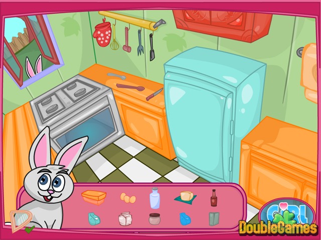 Turns out not only human beings like to cook delicious things. See it for yourself in this new funny and entertaining online game under the title Bunny Cake! Meet hilarious bunny and help him to cook the pie. First you have to gather the needed ingredients from the fridge. Milk, eggs, butter... What else? Flour, sugar and cream. Then follow the simple recipe and cook. Be attentive and quick, don't mess up. Step by step you are going to create the most delicious pie. When you are done, decorate the plate and voila, the dinner is served. Play right now and for free and have fun. Bon appetit!