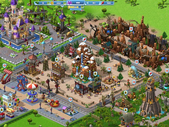 Play a role of an amusement park manager in a new social game named Coasterville brought to you by famous Zynga. Restore this abandoned park and add some new features! First, choose the way your playground will look like. Select between various themes. Then, start to rebuild your own park. Details are very important! Make the mascots doing their best! Take care of your visitors and the luck will come to you! Build the new kinds of rides or\and roller coasters and earn more money to unlock the incredible things! Don't forget to use the social features and share your progress with your Facebook friends! Prepare to have fun in the Coasterville!