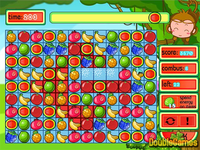Get ready for the new colorful online Match 3 game called Cute Fruit Match. The new incredible adventure is waiting for you if you set about this addicting Match 3 puzzle. Help the cute little monkey to eat her favourite fruits by matching the same fruits before time is up. Demonstrate your best skills in playing Match 3 games and complete all the stimulating levels. Do your best in order to earn the highest score. Start playing the terrific online Match 3 game Cute Fruit Match right now and absolutely for free.