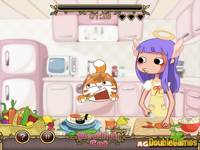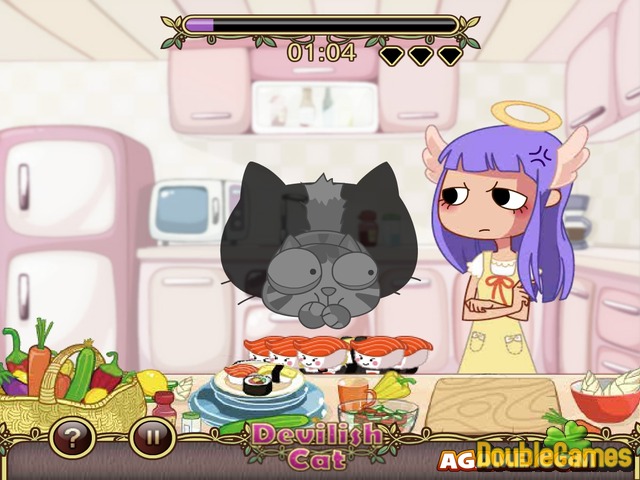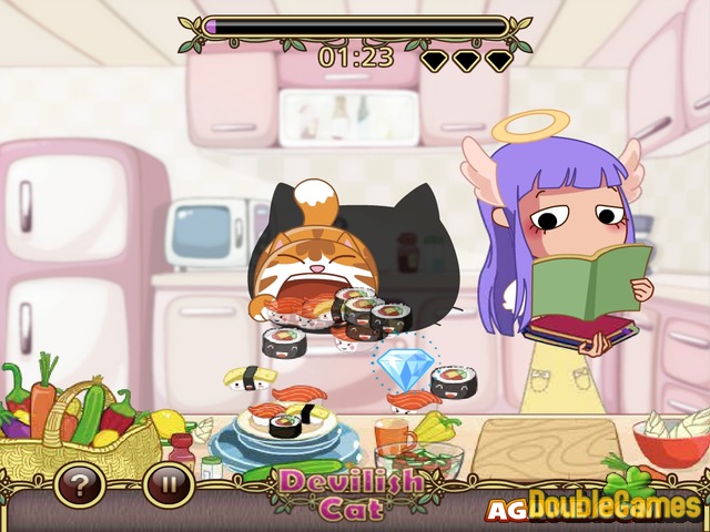 Hungry and naughty Cat came to the kitchen in order to get some tasty food! Feed this cute animal all kinds of food while his proprietress is busy drinking tea or talking on the phone in new hilarious online game Devilish Cat! Be attentive and quick, try not to get caught and watch the time. Pass all the levels one by one and get access to the new tasty dishes. Oh, and don't forget to grab the diamonds... Hurry up and start playing Devilish Cat right now and absolutely for free. Lots of fun is guaranteed. Good luck!