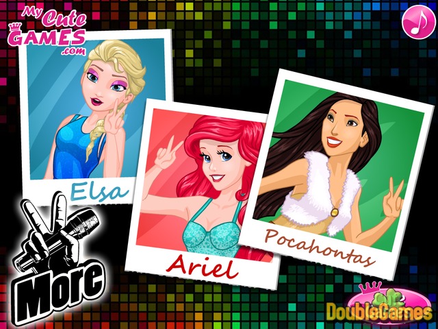 We bet you know the music reality show The Voice very well! Disney princesses Elsa, Ariel and Pocahontas have beautiful voices and they are singing in The Voice of Disney! All of them are going to rock the stage of this one of a kind super popular show. Their goal is to prove they've got real talent. The judges are Ursula, Maleficent and Cruella de Vil. Help the princesses look gorgeous and sing their best to be chosen. All of this and more in new free online time management game for girls Disney The Voice Show. Good luck and have a lot of fun.