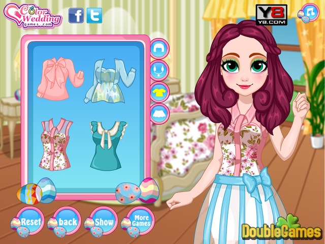 Play this new fun free flash online game under the title Easter Spring Make Up Look! Here you get a chance to learn how to get the cutest makeup look for the Easter celebration. First of all you clean the face using lotions and face cleaners, do the eyebrows. Then use cosmetics - eye-shadow, eye-liner, mascara and lipstick. When your makeup is done you can finally choose the best outfits to dress up. Have a lot of fun with Easter Spring Make Up Look!