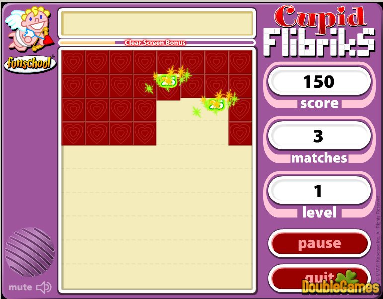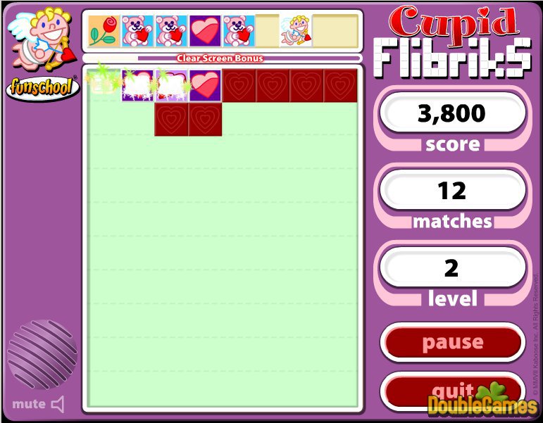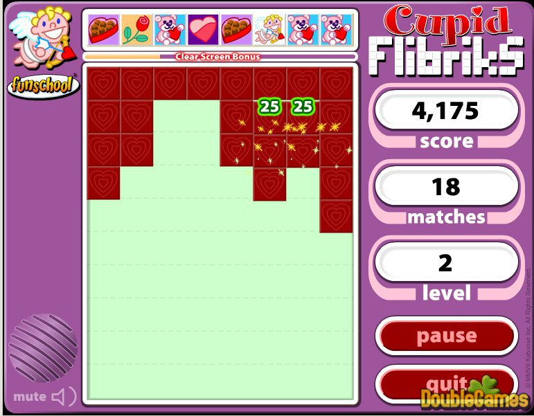 Are you puzzled with what to do on the threshold of St. Valentine's Day? There is so much time left to think over! Therefore just relax and spend a little time playing new online Valentine's game Flibricks Cupid! Become puzzled with a Puzzle! Follow its uncomplicated instructions and be ready to win the victory! Don't forget to watch the bottom of the game field. Even if one tile hits it, your gameplay is over! Play Flibricks Cupid online and be watchful!