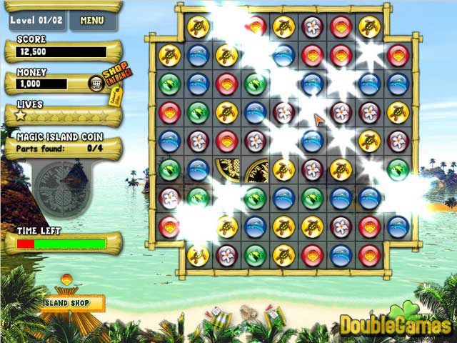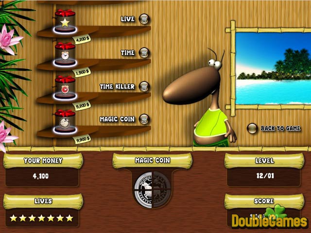 Hotei, the happy god of abundance and good health, needs your help. The pieces of his Magic Coins have been scattered throughout the islands of a tropical paradise. Find and restore all four pieces of each Magic Coin and Hotei will reward you with gifts and treasures untold! While hopping from island to island, you will unlock many fantastic items and earn additional coins that you can spend at the shop. Let Hotei and his jewels whisk you away to tranquility!