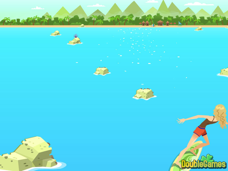 Are you a fan of the surfing and you like to rush thought the waves, overcoming all obstacles? So, you cannot refuse the poor young girl, whose name is Sam in help! In case, she is going to reach the beach on the surfboard, but she doesn’t know, that big stones and different statuettes are waiting her on the way! Play online new exciting flash game right now and help Sam to get the beach safely! Have fun!