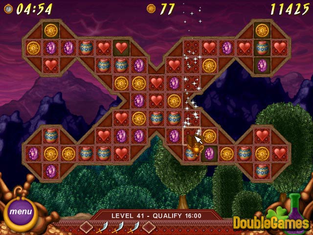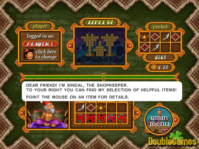 Go on an exotic trip throughout the land of Aladdin in this adventurous icon matching game. Pick your favorite character and recover the 120 missing pieces of the magic carpet, collect potions and trade valueful items with the shopkeeper in town. Make the legend come true and find yourself flying towards the lands beyond your deepest imagination.