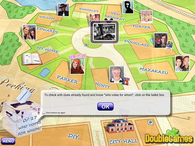 It' s time to elect the new mayor of Peeking Town! The townspeople are pending the changes! Start playing Miss Teri Tale: Vote 4 Me, a Hidden Object game, and plunge into the world of politics in the course of the election campaign. Your challenge is to help Miss Terri Tale, a world-famous writer, in data acquisition. Explore the town in search of the residents' voting preferences and help Miss Terri Tale canvass the neighborhood. Meet uncommon characters, take part in the political life and solve the challenges with Miss Teri Tale: Vote 4 Me game. Download the game for free and feel the Election Day fever!
