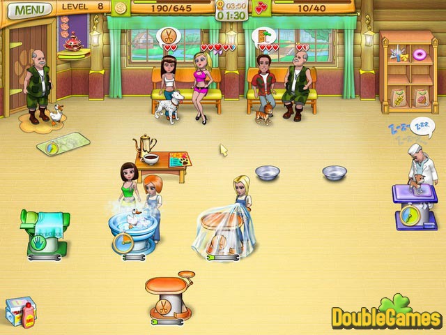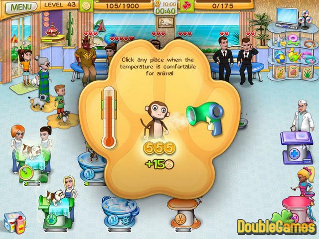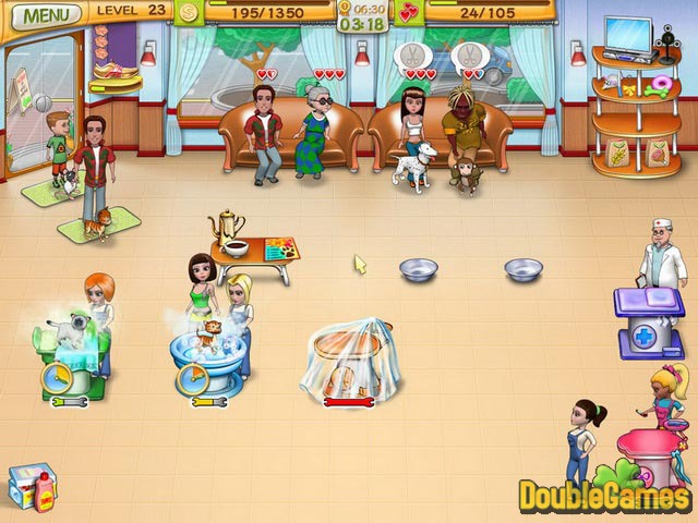 A pet is an animal to be enjoyed and loved. So imagine Masha's surprise when a greedy industrialist starts snapping up all the land in Petsville in order to build a factory that produces plastic animals. Without a moment's hesitation, she makes a beeline for the town to show how pet care can rake in more money than selling fake cats and dogs. To save the day, you'll have to provide a variety of services to a stampede of customers and their animals. There will scarcely be a moment to breathe as you wash and groom seven different pets, keep your equipment in working order, sell exclusive products, beat 14 different mini-games, purchase advertising, upgrade your salon and keep tails wagging. Featuring fast-paced gameplay, eye-popping graphics and lively music, Pet Craze Show is destined to become a stunning time management success!