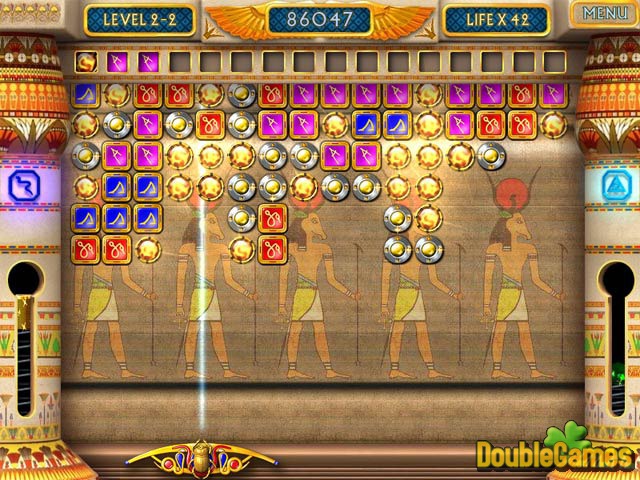 Unleash the power of the scarab as you launch them at blocks to uncover the secrets of Pharaoh Akhenaten. Shoot blocks to gather coins, gather coins to earn the Nine Mystic Gems, and use the Gems to solve the Pharaoh's Mystery. But you'll have to move swiftly. Let the blocks drop too far down and your journey will end and the Pharaoh's Mystery will remain unsolved. Forever.