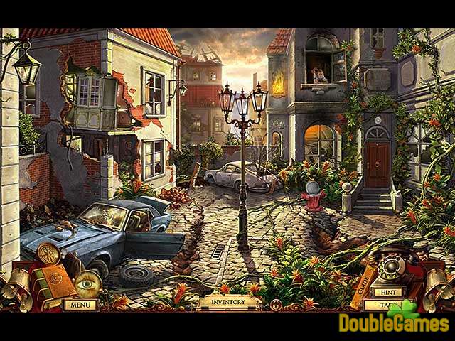 Three childhood friends have grown up and are performing important roles in their community: a professor, a mayor, and a banker. When a meteor falls near the city in which they are living, Professor Gustav discovers it's emanating an unknown energy, and begins a series of experiments without the mayor's permission. Financed by the banker, the professor builds an evil machine that causes the meteor's energy to spin out of control, destroying the city and mutating its plants and animals. The people of the town are evacuated, but the rescuers leave two children behind. In Questerium: Sinister Trinity, you play the investigator hired to destroy the evil machine, rescue the abandoned children, and arrest the professor!