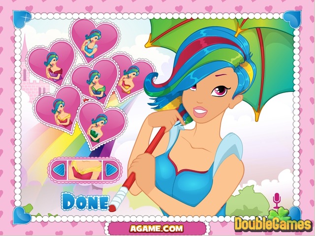 Are you aware of the latest fashion tendency? Than you must know that today bold colors are as stylish as never before. Enjoy a riot of color in this new online game - Rainbow Princess Makeover! This evening the Kingdom of Clouds gives a great party, so help Rainbow Princess choose the right make-up, modern dress and accessories. Red, orange, yellow, green, blue, indigo and violet are bubbling over there, putting you in a good mood. Delight in colors given by sunlight in Rainbow Princess Makeover!