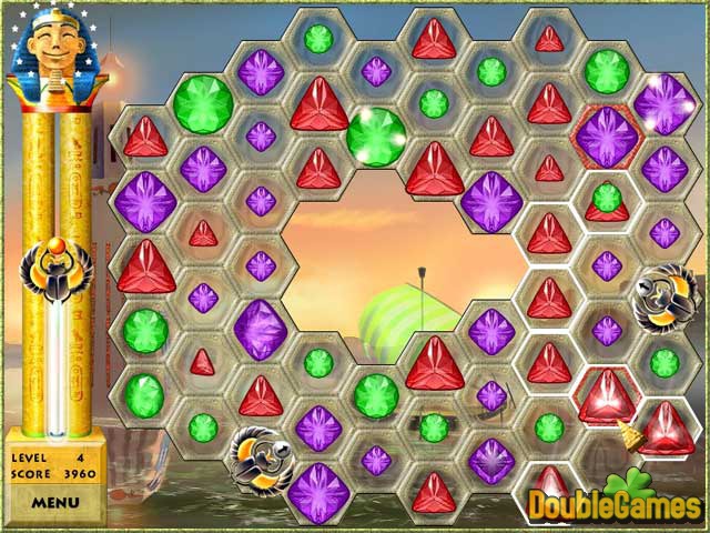 Journey to the ancient past for brain-bending fun in this innovative puzzler. Move three brilliantly colored jewels of different sizes into a group and they'll disappear off the screen. Work quickly and the Pharaoh will be pleased. Take too long, and the Pharaoh will snatch away your glistening gems. A vivid puzzle challenge, Scarabs of Pharaoh features loads of challenging levels, addictive gameplay, and a stirring Egyptian theme. The ancient world hasn't been this much fun for your brain since the days of the Sphinx!
