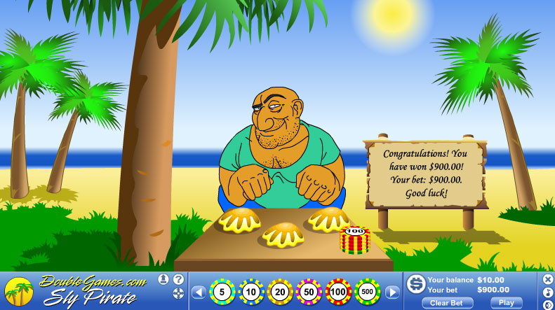 You must admit that there are many casino games that you can play on the Internet, and while all of them have pretty much the same, or almost the same story, and that is winning as much money as you can on slots, cards on any other gambling methods, there are some great games like Sly Pirate, which will also give you a beautiful setting to play it in! That is why everybody likes to download this interesting game for PC, aside from the fact that it is completely free. The first thing you see in the game is the beautiful long beach with the golden sand that is lying everywhere… But you first impression is soon to be ruined by an ugly and sly pirate who thinks that he is better than you in gambling! He wants to take away all your money, but don’t let him do it! Beat him in his favorite game, choose always the right seashell, and at the end of this ultra fun game you will have bigger treasure than all the other pirates! This simple, but outstandingly interesting game waits for you and your friends, and it is called Sly Pirate!