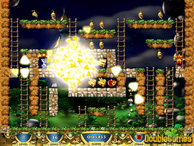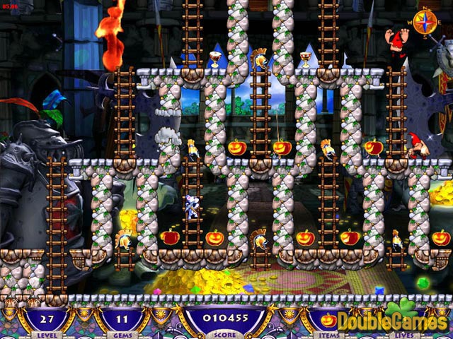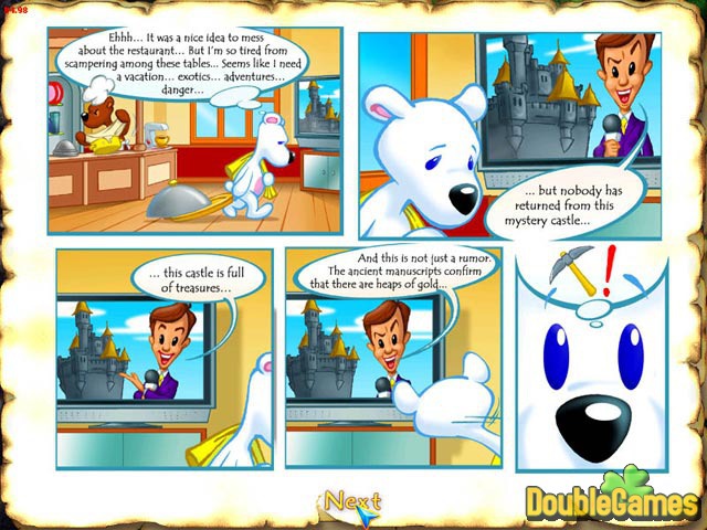 After winning a contest to manage the best restaurant in his hometown, Snowy the Bear grew restless. Upon seeing a newscast reporting on a mysterious castle from which no treasure hunters have emerged, Snowy packs his pick axe and satchel and sets off on an all-new adventure! As he makes his way through three beautiful environments, Snowy must collect all of the jewels and other trinkets on which he can get his paws while avoiding court jesters, dungeon masters, vampires and more! Snowy: Treasure Hunter III is an arcade puzzle game in which you climb ladders, dig through platforms and use a variety of items to collect goodies and either trap or avoid enemies. As bears like to keep their feet on the ground, there isn't any jumping involved, although you will have to perform mental gymnastics to figure out how to gather all of the riches on each level while staying alive. If you loved the first two Snowy: Treasure Hunter games, you'll enjoy the third one even more!