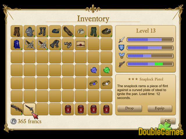 Play The Three Musketeers: Milady's Vengeance and go on an unbelievable adventure with famous musketeer D'Artagnan! He has a trouble: his best friends Atos, Porthos y Aramis and the woman of his heart Constance Bonacieux have disappeared! Help D'Artagnan find and save his dear friends! Guileful Milady de Winter will try to prevent him but our brave musketeer will do his utmost in order to find his friends and Constance and set them free! Have fun with The Three Musketeers: Milady's Vengeance!
